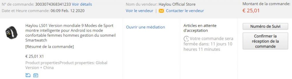 Même chose pour ma Haylou LS01, une smartwatch que je voulais absolument tester. Je l’ai commandée le 12 février et elle est arrivée le 4 mars 2020. On est toujours dans l’ordre des 3 semaines habituelles.